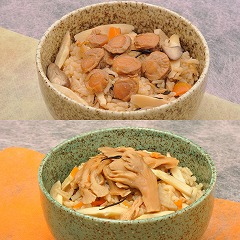 帆立炊き込みご飯の素135g×4、えぞ舞茸鶏めしの素135g×4