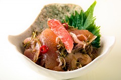北海道産の郷土料理、松前漬に数の子、帆立貝、つぶ貝、ずわいがにを入れたチョット贅沢松前漬です。