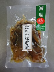 北海道産の郷土料理の松前漬に数の子を70%加えた松前漬です。
