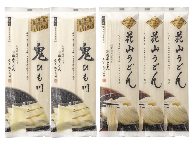 〈内容量〉花山うどん200g×3袋、鬼ひも川200g×2袋