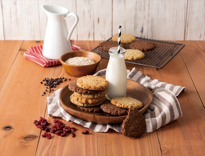 オートミールの香ばしい香りと、ざくっとした食感クッキー。ちょっと大き目サイズでも、食べきれるあっさりとした味わいの中に、素材の組み合わせが楽しみなクッキーです。