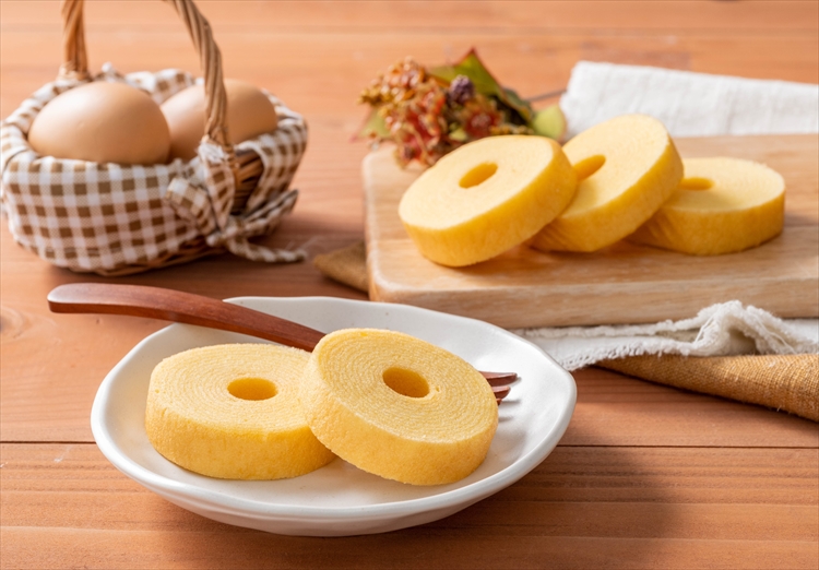 自然の恵みにあふれた環境で育った鶏からとれる、新鮮な有精卵を使ったスイーツは多くのお客様に愛されています。深川カントリーファームが生み出すスイーツはたまごのコクがありながら、自然で上品な甘さ、素朴で飽きのこない味わいが魅力です。1層ずつ丁寧に焼き上げたバームクーヘンは、食べやすいサイズにカットされており、お子様からご年配まで愛される味わいです。