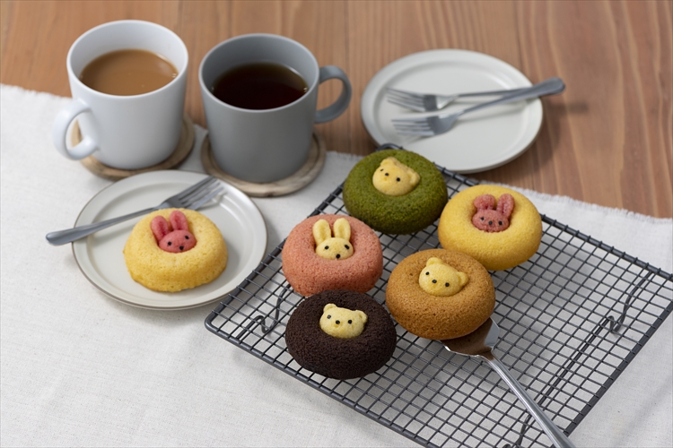 真ん中から動物たちがひょっこり顔を出した焼きドーナツ。その愛嬌のある見た目は、食べるのがもったいなくなるほど。かわいいボックスがギフトにもぴったりです。