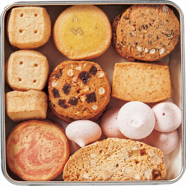 〈内容量〉いちごメレンゲ・ショートブレット×各5個、ストロベリーマーブル・ビスコッティープレーン・五穀・玄米チョコ・パンプキン・チーズ×各2個