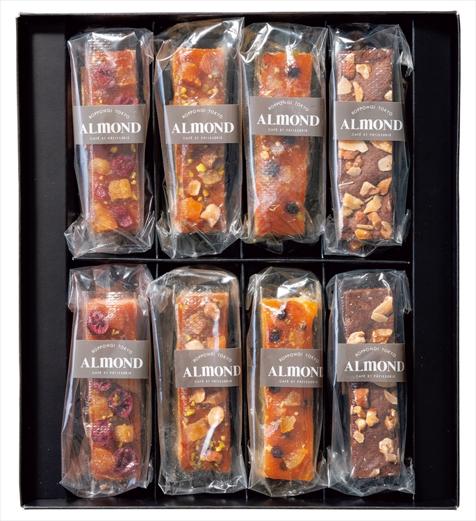 ドライフルーツやナッツでデコレーションした見た目にも華やかな4種類のスティック型のケーキです。