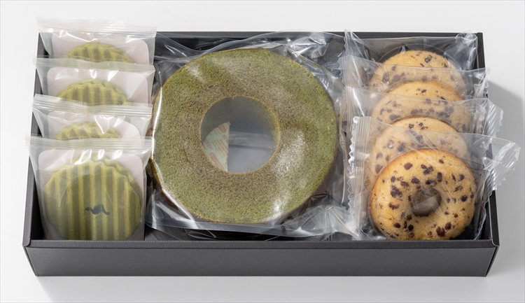 〈内容量〉宇治抹茶バウムクーヘン×1個、小豆ドーナツ×4個、ヴァッフェル×4個