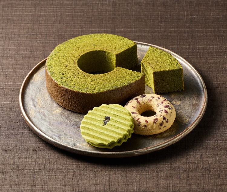 元禄年間創業の老舗「丸久小山園」の宇治抹茶を使用した上品で芳醇な香りが広がるバウムクーヘン。優しい甘さの小豆の焼きドーナツに厚みのある波型クッキーに、口どけの良いクリームをサンドしたヴァッフェルもご一緒に。