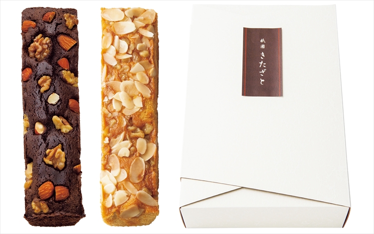 一九七六年から滋賀県で営んでいた小料理屋「北さん」が人気を呼び、二〇〇三年に京都の祇園で開業した割烹料理屋 祇園きたざと。花見小路から西に一本入った通りで元お茶屋の風情を残しつつ、気取らない雰囲気と創作料理が楽しめる。そんな和モダン割烹から届くのは、隠し味に塩を使い、上品な甘さが引き立ったパウンドケーキチョコとキャラメル。くるみやナッツを贅沢に散りばめ、風味豊かな焼き上がりです。