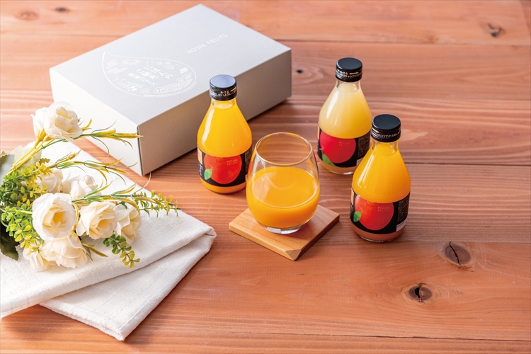 にほん全国各地で育った果物の中から厳選し、砂糖・香料・着色料を使用せず、果物の純粋な甘みと酸味と香りを味わえるよう、何度もテイスティングを重ねて仕上げたジュースです。飲んでからだのすみずみまで気持ちよく潤える、一日の始まりにぜひお勧めしたいジュースです。