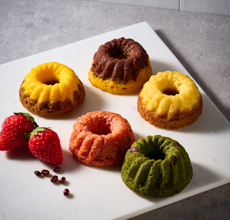 果実風味の生地に、フレーバーやつぶつぶ果実をプラス。ひと口で、ふたつおいしいかわいらしいクグロフです。