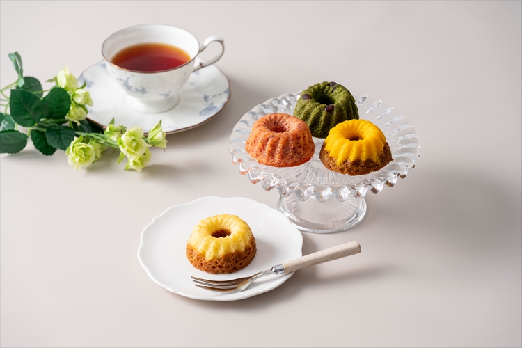 果実風味の生地に、フレーバーやつぶつぶ果実をプラス。ひと口で、ふたつおいしいかわいらしいクグロフです。