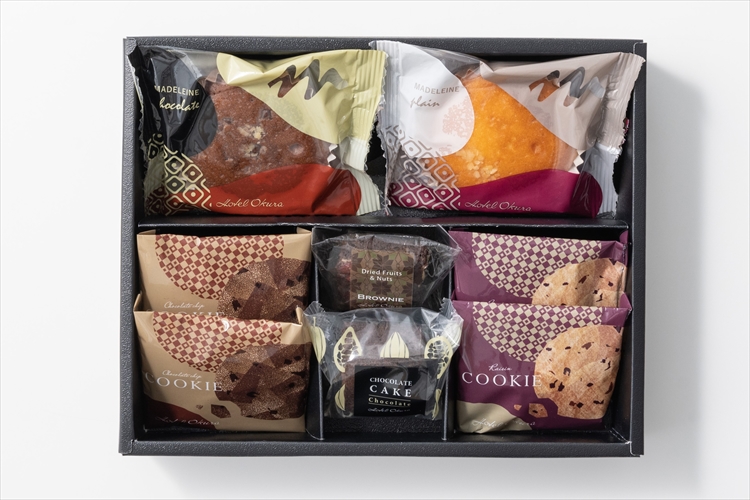 〈内容量〉レーズンクッキー・チョコチップクッキー×各2個、マドレーヌ(プレーン・チョコ)・ブラウニードライフルーツ&ナッツ・チョコレートケーキ×各1個