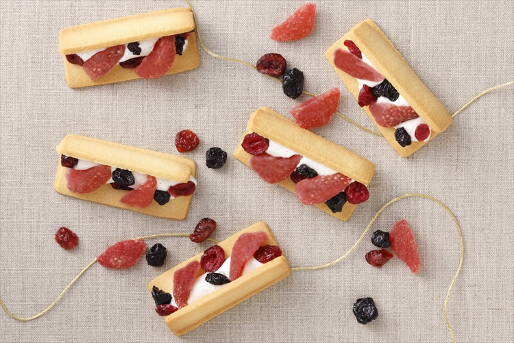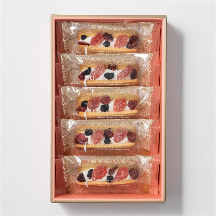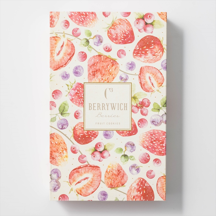 シーキューブの定番品。3種のベリーを使った贅沢で華やかなサブレ。生菓子のように華やかな見た目に仕上げました。
