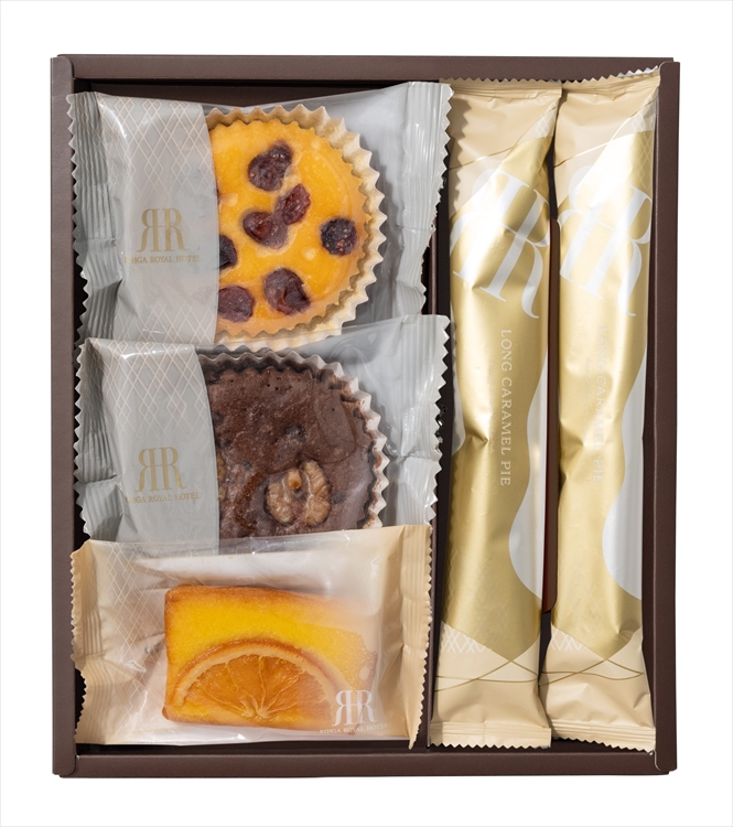 〈内容量〉プチケーキ(ベリー・ショコラ&ナッツ×各1個)、オレンジケーキ×1個、ロングキャラメルパイ×2本