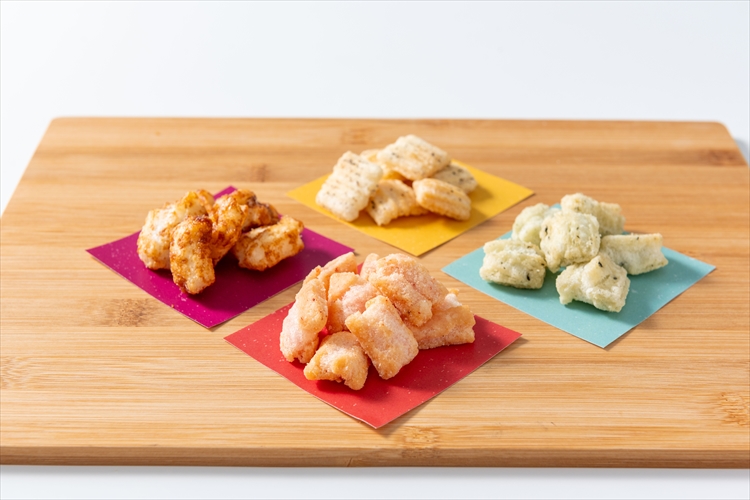 京都亀岡で保津川あられ本舗が昔ながらの製法で作る、お米の香りがする「ほんもの」のあられ。きめが細かく、粘りのある食感が特徴の佐賀県産ヒヨクモチを使用して、健康や美容に良いとされる米油で1つ1つ丁寧に揚げ、香り豊かな4種のフレーバーに仕上げました。京の職人がこだわり続ける、「お米の香りがするあられ」をお楽しみください。