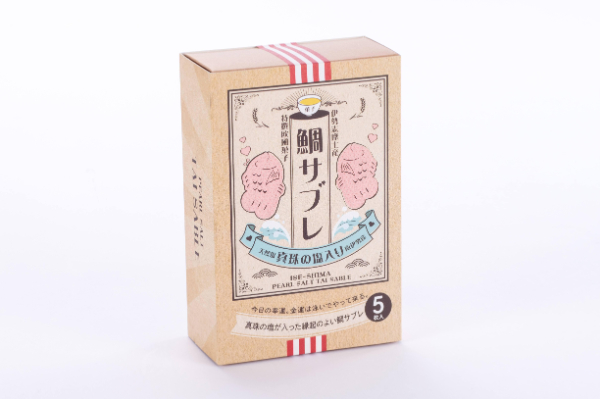 南伊勢の鯛をモチーフにした可愛いハートの形をした尻尾のサブレです。サクサクとした食感の生地には、南伊勢町産の「真珠の塩」が入っており、どこか懐かしい素朴で癖になるサブレです。