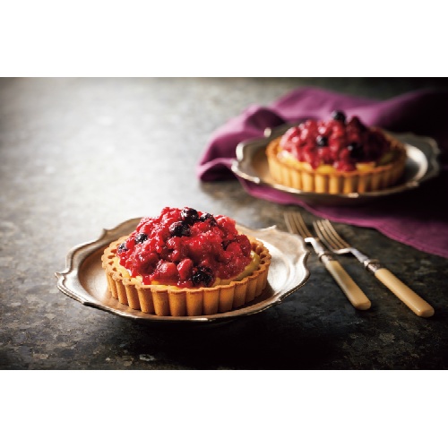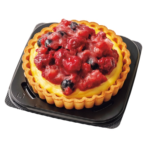 福岡県産あまおうのコンフィチュールを使用した、食べやすいサイズのタルトケーキ。カスタードクリームが乗ったしっとりタルト生地とふんわりスポンジに、甘酸っぱさが調和します。