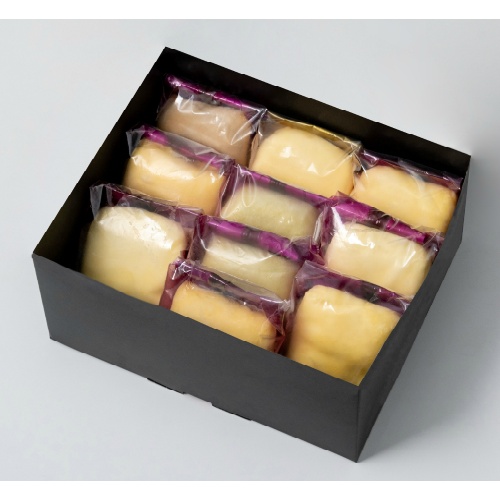生地は和菓子屋ならではの大福のようなもちっとした食感を再現しております。その風味豊かなクレープ生地に、甘さ控えめのホイップクリームを包みました。7種類のクレープとバラエティ感のあるセット。