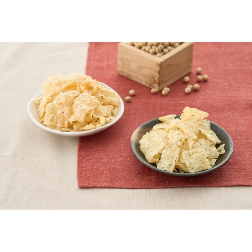 国産大豆を使用した、かんそうのゆばを油で素揚げをし、塩こしょう味とのり塩味で味付けしました。そのままお召し上がりください。