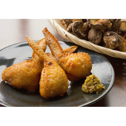 山師の言葉で椎茸のことを指す「なば」。宮崎県産原木しいたけのミンチを九州産若鶏の手羽に詰め込みました。焼いてよし、揚げてもよしのなば手羽餃子を一口ほおばると、若鶏の肉汁と椎茸出汁のうまみが口の中に広がります。