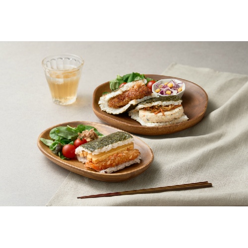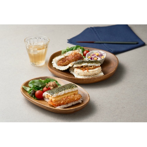 多彩なおかずを同等量のご飯で挟み、まるで手のひらにお弁当があるかのようなサンドめし。スマホやPCを操作しながら片手で食べるもよし、汁物等を用意して定食のように食べるもよし、忙しい現代に向けて開発したおにぎりです。