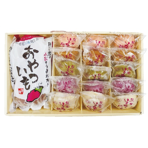 〈内容量〉熊本いきなり団子(プレーン・紫芋・よもぎ・黒糖・さくら各80g×3個)(計15個)、おやついも(新感覚冷凍焼き芋)500g×1袋