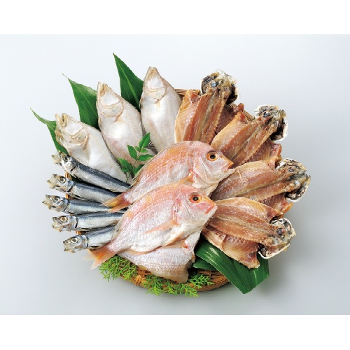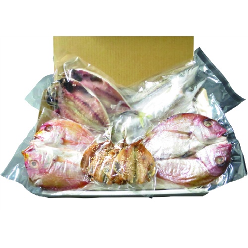 〈内容量〉真鯛 約140g×1枚、れんこ鯛 約130g×1枚、かます 約90g×2枚、真あじ 約90g×2枚、あじみりん 約25g×4枚、