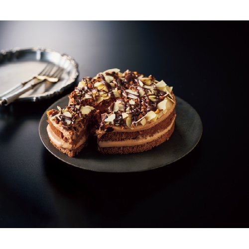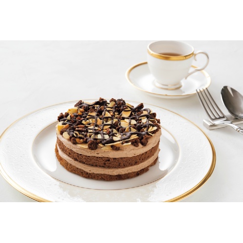 子どもから大人まで楽しめるチョコレートケーキ。パリパリチョコとザクザクナッツで楽しい食感をお楽しみください。