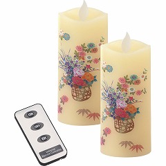 ゆらゆらとやさしく揺らぐリアルな炎は、樹脂製の炎にLEDの光を照らし、電磁石による磁力の反発を応用して限りなく自然に近い揺らぎを表現しています。ボディ全体が明るく光り、ほのかな灯りが、辺りをやさしく照らします。同柄のいろはあかり2本(リモコン付)をギフト箱に入れたご進物です。