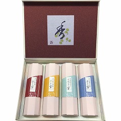 日本で初めての煙の少ないお線香ブランド「宝シリーズ」専門店を中心にロングセラーです。ジャスミンブレンドの「ルビー宝」、花々ブレンドの「パール宝」白檀・沈香を調香、いわば古典の香り「サファイア宝」天然花香料のブレンドの極み「ダイヤ宝」。煙が少なく緑茶由来の天然消臭剤でお部屋の気になるニオイも消します。