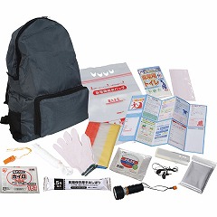 〈商品内容〉●リュック、非常用給水バック(約3l)、軍手、ロープ、笛、長期保存厚手おしぼり、防寒シート、ハンディライト、コンパクトFMラジオ、非常用トイレ、レジャーシート1畳用、マスク、カイロ、レインコート、防災ガイド×各1