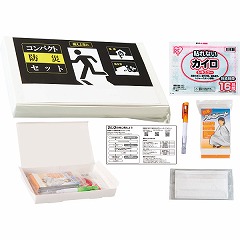 〈商品内容〉●ホイッスル付きライトペン=ボタン電池・電池交換不可(※色指定不可)・防寒アルミシート・カイロ・不織布マスク・防災ガイド(表紙裏)×各1