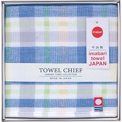 今治ガーゼ&パイルハンカチ(チェック) ブルー