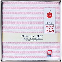 今治ガーゼ&パイルハンカチ(ストライプ) ピンク