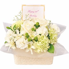 バースデーフラワー(生花アレンジ)(お名入れ) ピュアホワイト
