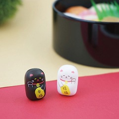 箸を持ち上げると起き上がる!だるまとまねきねこの起き上がり箸置き。縁起の良い動きとデザインで、贈り物や特別な日の食事にぴったり。2個セット。