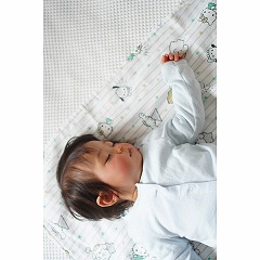 赤ちゃんをしっかり包む綿100%のガーゼおくるみです。ゲップ用のクロスや授乳時のカバーとしても使えます。大きくプリントされた手書き風のキャラクターと、星&ストライプ柄がポイントになっています。