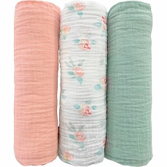 スワドルデザインズ モスリンブランケット3枚セット ピーチピンクフローラル
