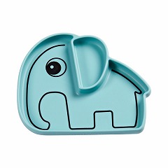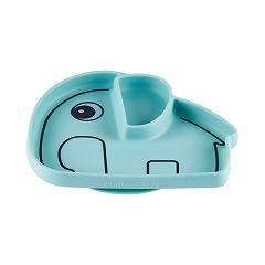 象のElpheeをかたどったシリコン製プレートは全体的に丸みがあり、プレート自体も乗せた食材も滑りにくく、ひとり食べの練習にもってこい。耳の部分は仕切られているから果物やデザートに利用できます。こんなキュートなプレートでワンプレートごはんにしたら、子どももワクワク気分で食事ができるはずです。