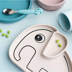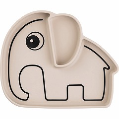 象のElpheeをかたどったシリコン製プレートは全体的に丸みがあり、プレート自体も乗せた食材も滑りにくく、ひとり食べの練習にもってこい。耳の部分は仕切られているから果物やデザートに利用できます。こんなキュートなプレートでワンプレートごはんにしたら、子どももワクワク気分で食事ができるはずです。