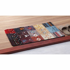 ギャベ柄の玄関マットです。多色使いで玄関が華やかになります。ポリプロピレンを使用していて丈夫な丈夫な商品です。ギフト箱入り。