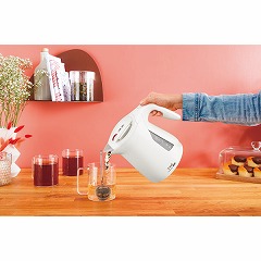 倒れてもお湯がこぼれにくい構造。ハイパワ-1250Wでスピード沸騰、カップ1杯分(140mL)のお湯が約1分で沸騰。