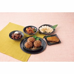 〈商品内容〉●賛否両論(ハンバーグおろしポン酢仕立て(豚肉・牛肉使用)120g×3、鶏肉と根菜の黒酢餡仕立て185g、蒸し鶏の梅ジュレ仕立て・牛とろとろ煮各150g、豚ばらの味噌煮込み70g)