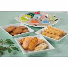 おかき・ひねり揚げ・ミレーフライのアソートギフトです、懐しい味や食感の違うお菓子など色々楽しめます。