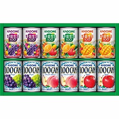 果汁100%フルーツジュースのベストセラー「100CAN」と野菜&フルーツの美味しさが人気の「野菜生活100」を詰合せました。フルーツと野菜の美味しさが楽しめるファミリーギフトです。