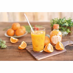 有田みかんジュース100%ストレート。皮を向いて果肉だけを裏ごしするように搾りました。甘くてまろやかな味わい。爽やかな後味です。