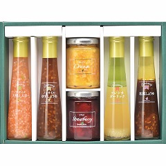 お砂糖の一部に「和三盆糖」を使い甘さを抑えた(糖度38度)ジャムと、素材の持ち味を大切に仕上げた個性的なドレッシングの詰合せです。
