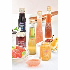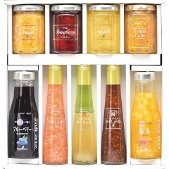 フルーツ本来の色と風味を大切に仕上げたジャムやフルーツソース、角切りにしたフルーツが入ったミックスジャム、素材の持ち味を大切に仕上げた個性的なドレッシングの詰合せです。