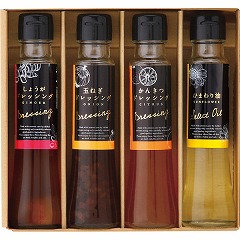 〈商品内容〉●しょうがドレッシング・玉ねぎドレッシング・かんきつドレッシング各100ml×各1、ひまわり油90g×1