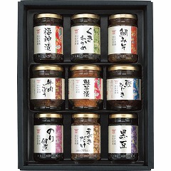 〈商品内容〉●福神漬90g、くきわかめ75g、鯛みそ100g、牛肉ごぼう55g、鮭茶漬60g、鰹ひじき40g、のり佃煮95g、えのきだけ90g、黒豆100g